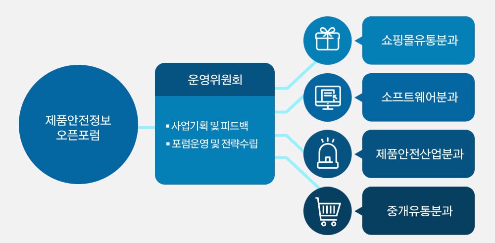 KC인증, 리콜 등 제품안전정보를 활용한 위해제품 차단 등의 활동과 제품사고보고의 자발적인 수행 등 민간의 제품안전관리 역량을 강화하고,관련 업계의 애로사항 해소를 지원하기 위하여 본 포럼이 발족되었습니다.