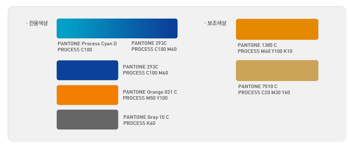 전용색상은 고유한 색상이미지를 형성하고 마크, 로고타입 등 각각의 요소에 적용되어 이미지를 전달하는 중요한 역할을 한다.