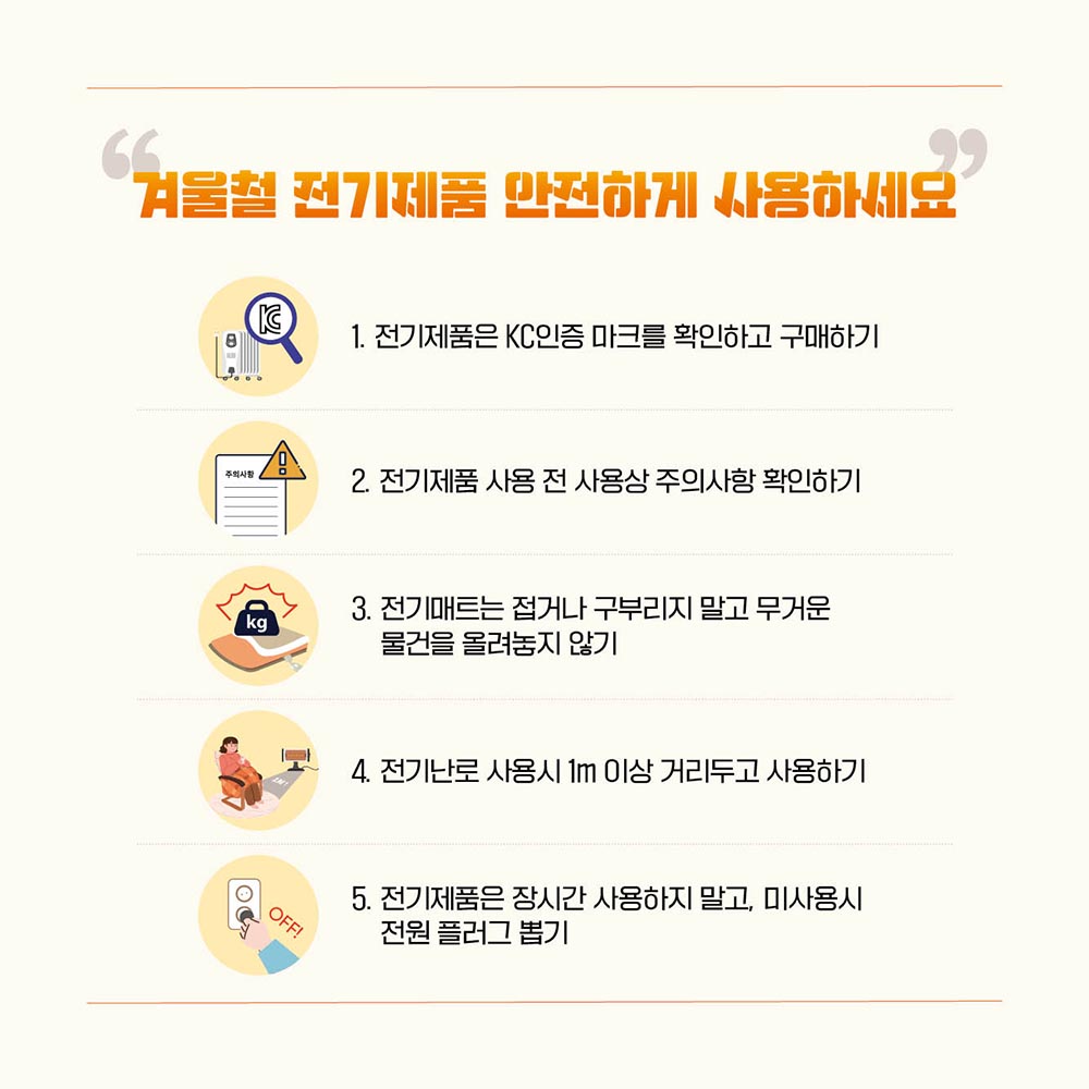 KC인증 전기제품 선택과 사용으로 안전하고 따뜻한 겨울나기 캠페인
